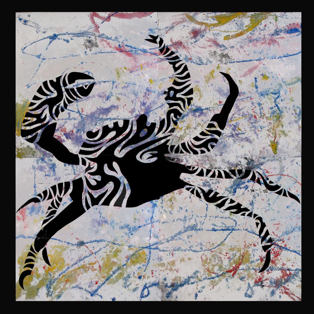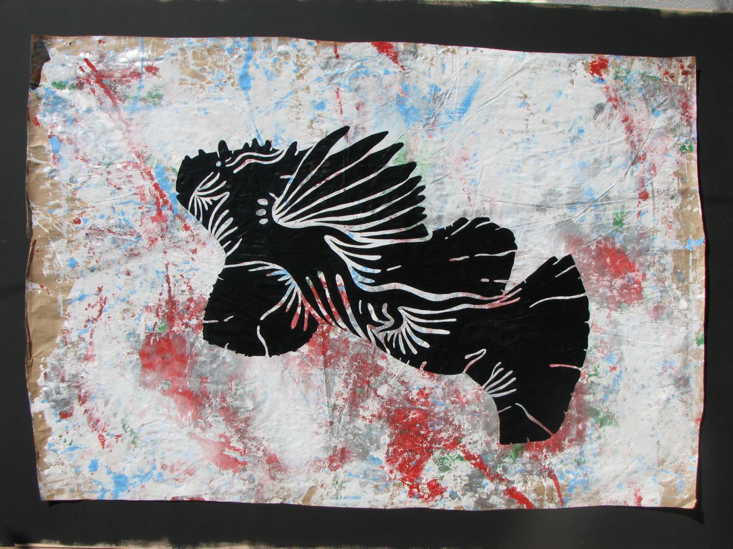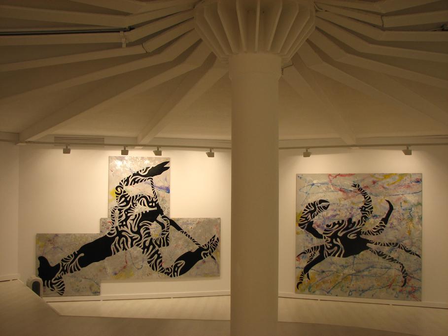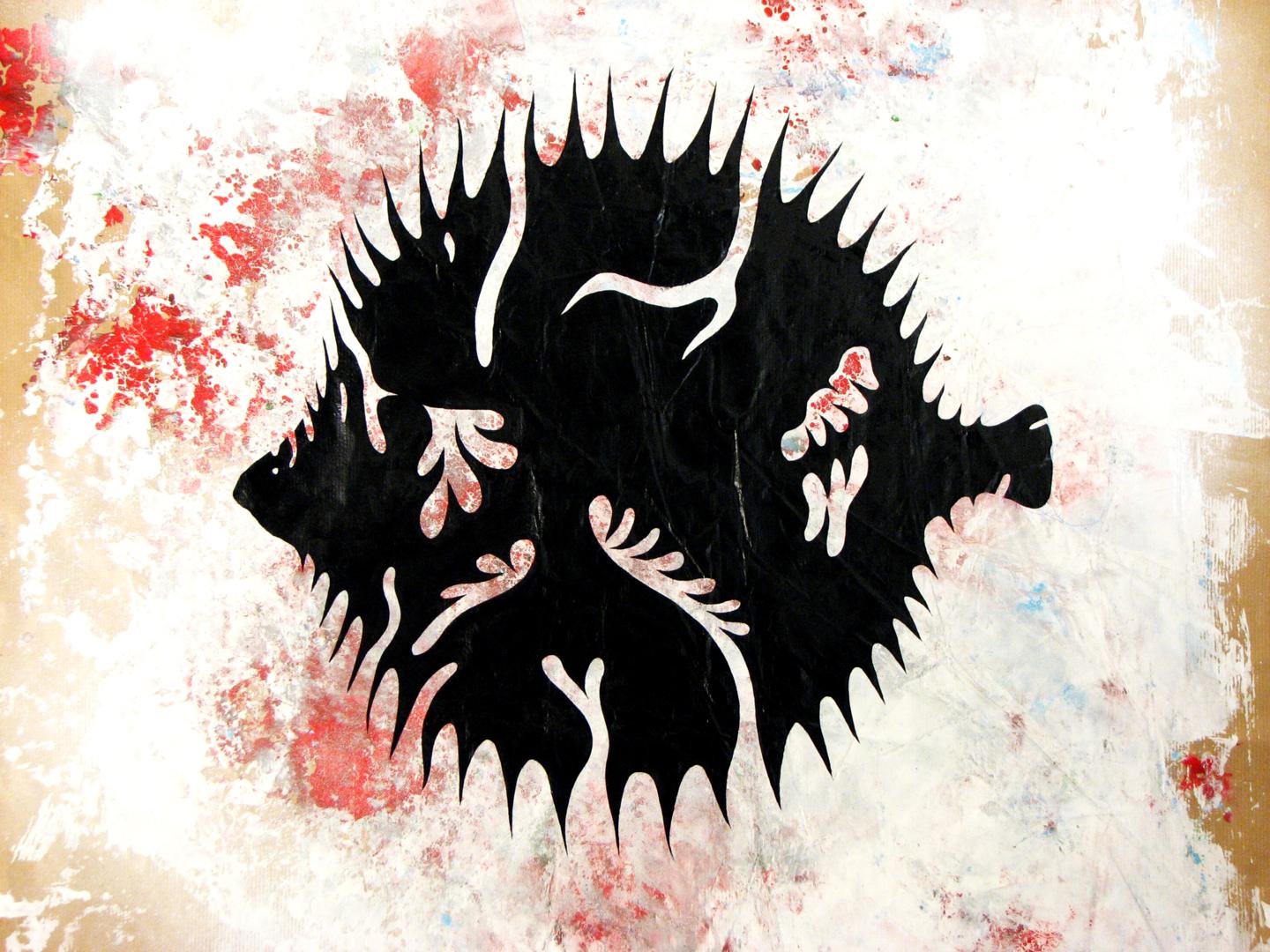 Cuando hablamos del mar, quizá podamos recordarlo como una imagen estática, que corta el horizonte con ese inamovible nivel azul (o de cualquier otro maravilloso color, según las horas del día y los fenómenos atmosféricos) pero es realmente el medio, como sabemos, más vivo y con más movimiento que existe. Es precisamente el movimiento, de donde parto con esta serie que titulo “Mar de esporas”, simbólica en cuanto a pretexto utilizado, pero abstracta de base, ya que la enlazo con otra serie anterior llamada Esporas, en esta serie aglutino las formas de espora, para crear toda una serie de animales, que se relacionan con el mar, son obras de grandes formatos sobre DM, papel o incluso serigrafías donde el color es el protagonista, la serie se expuso en la Universidad de Huelva y en el Baluarte de la Candelaria de Cádiz.