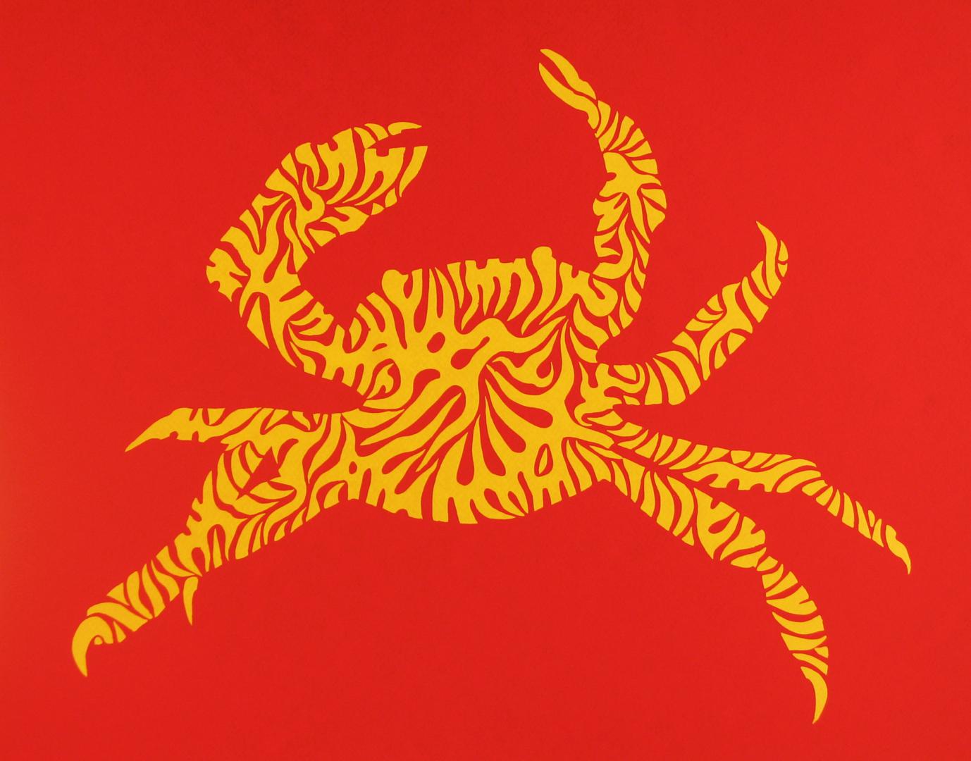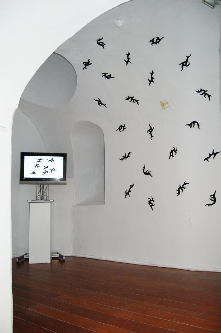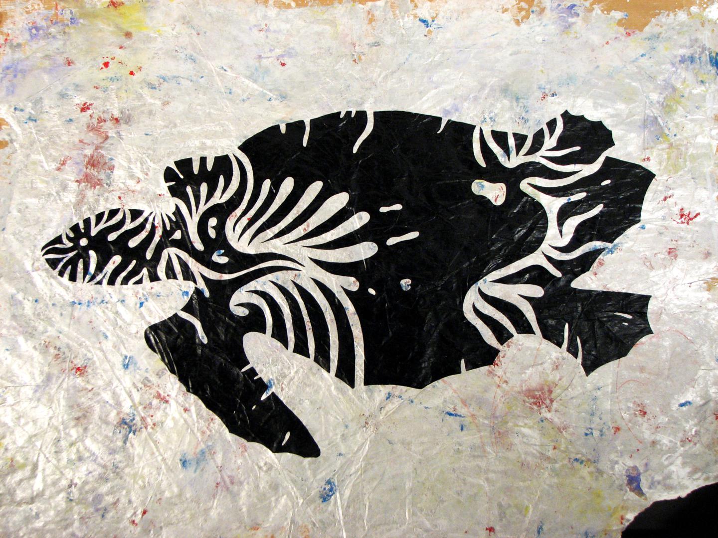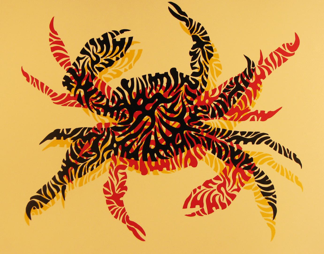 Cuando hablamos del mar, quizá podamos recordarlo como una imagen estática, que corta el horizonte con ese inamovible nivel azul (o de cualquier otro maravilloso color, según las horas del día y los fenómenos atmosféricos) pero es realmente el medio, como sabemos, más vivo y con más movimiento que existe. Es precisamente el movimiento, de donde parto con esta serie que titulo “Mar de esporas”, simbólica en cuanto a pretexto utilizado, pero abstracta de base, ya que la enlazo con otra serie anterior llamada Esporas, en esta serie aglutino las formas de espora, para crear toda una serie de animales, que se relacionan con el mar, son obras de grandes formatos sobre DM, papel o incluso serigrafías donde el color es el protagonista, la serie se expuso en la Universidad de Huelva y en el Baluarte de la Candelaria de Cádiz.