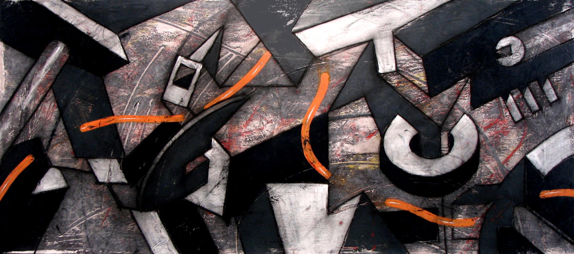 El concepto de estas series es un guiño irónico a la frenética actividad que se desarrolla dentro de las ciudades, el stress, la inmediatez de todo, la soledad que se respira dentro una urbe, donde cada uno corre a lo suyo y donde la des-humanización campea por sus laberínticas calles. Estas obras que trabajo mediante una primera técnica antigua como el palimpsesto, la desarrollare después con dibujos y serigrafías; en principio jugare con formas imposibles, que enlazo para hacer el trazado de esas ciudades, posteriormente, introduciré perfiles de hombres y mujeres a los cuales acoplare esas estructuras, en señal del conflicto psicológico sufrido por la ubicación dentro de esas ciudades.
