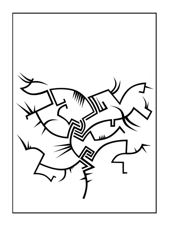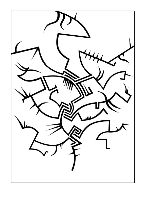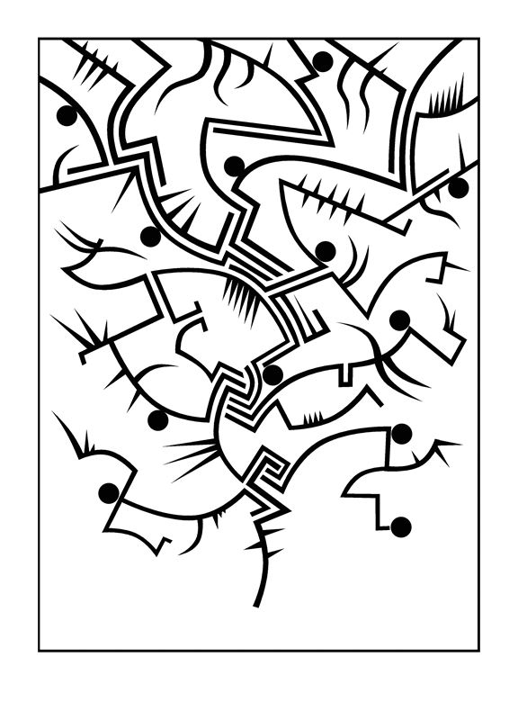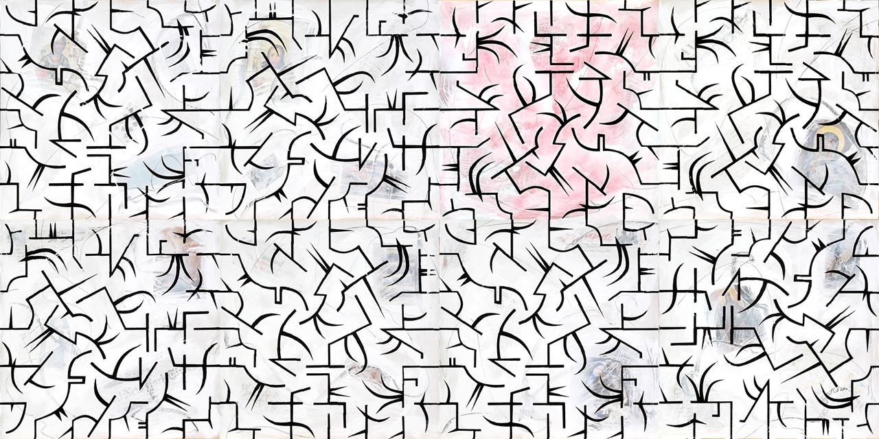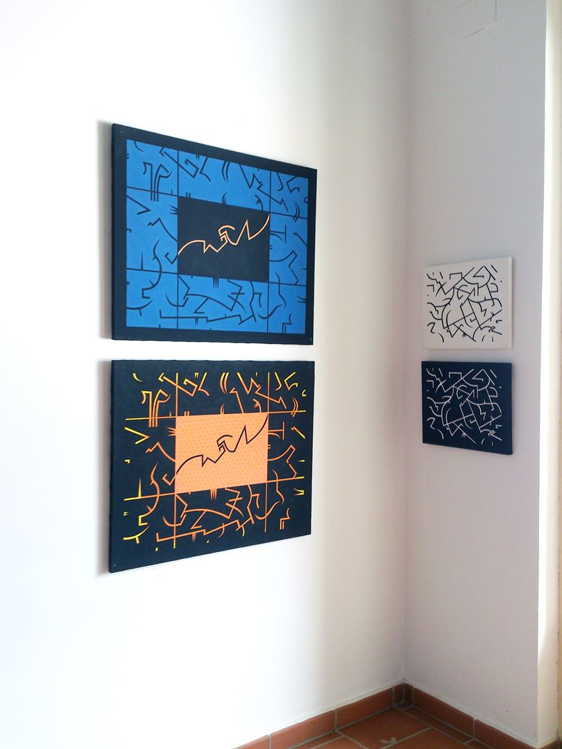 Después de la serie anterior quería volver a una obra más lúdica más colorista, más fresca, sin tanta “cocina”, y, como el concepto geométrico, junto a lo intrincado y el “horror vacui”, no ha dejado de interesarme nunca, es por lo que fije la atención en los laberintos, los muros ciclópeos y en los rompecabezas, que nos hicieron tanto pensar de chico, cuando comenzábamos a mirar un mundo lleno de multitud de formas y colores. Esta serie que la he comenzado digitalmente la estoy desarrollando mediante dibujos, serigrafías y pinturas de distintos formatos; cuatro de ellas ya se encuentran en “La Colección”, exposición retrospectiva permanente, que tengo, en el Conventual Santiaguista de Calera de León, Badajoz.