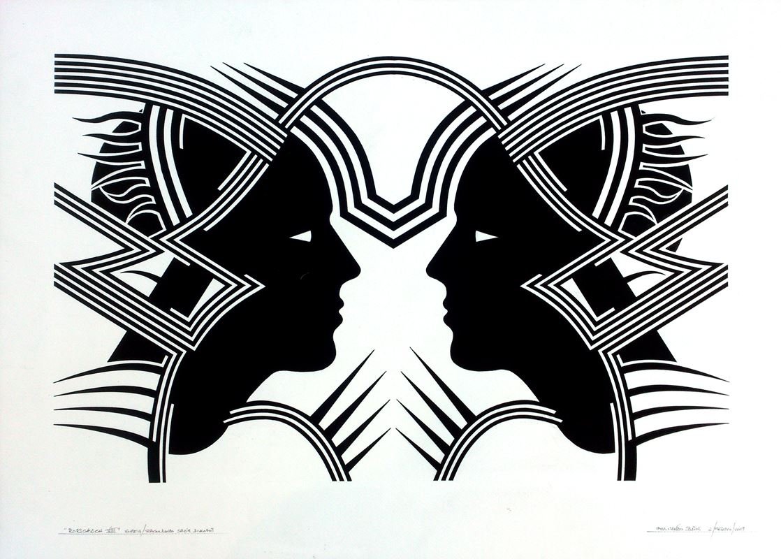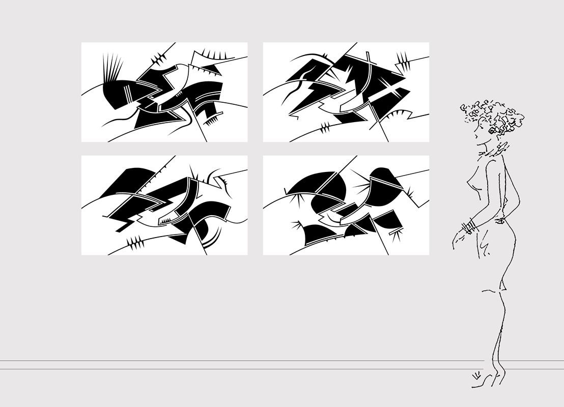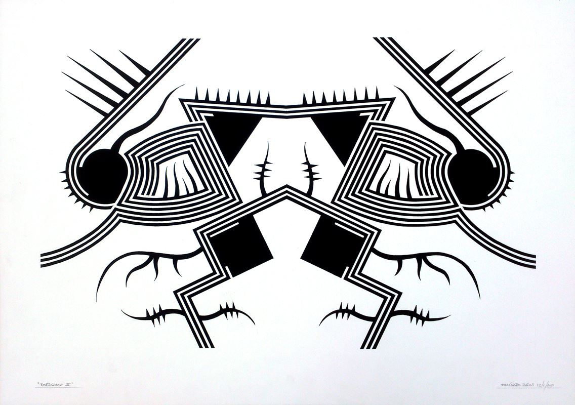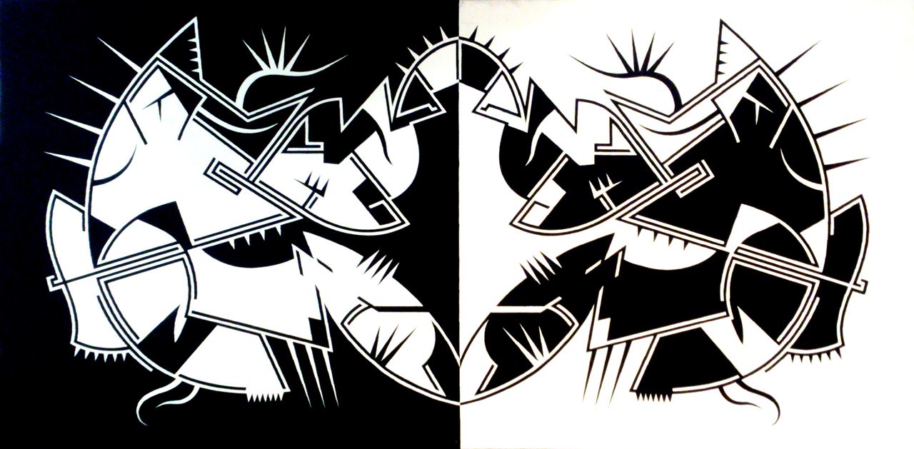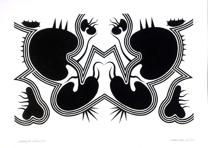 En este nuevo año, esta serie se diversifica en otras donde los conceptos y los divertimentos se mezclan de una forma poco ortodoxa, así surgen series como “Carmina Burana” formada por cuatro obras con igual estructura de base y el espíritu de rompimiento clerical que supuso dicha composición coral. La serie “Rorschach” aquí se juega con el concepto de espejo que supuso dichos test, pero ironizándolos mediante una geometría como antítesis de su abstracción gestual. Serie “Claustros”, es una serie de obras de composición cerrada en torno a unas formas geométricas de gran movimiento que invade ese marco que las encierra y que conceptualmente, podría ser esos enigmáticos pasillos que encierran el patio central de los conventos, por ultimo dos series en proyecto “Cultos” y “Cretonas”; la primera referente a esas películas de culto de principios del cine mudo de las cuales extraigo imágenes con las que juego de forma tramada sobre plancha de hierro y la segunda se trata de telas de flores estampadas sobre las que impresiono por medio de serigrafía y acrílico diversas composiciones en formatos cuadrados.